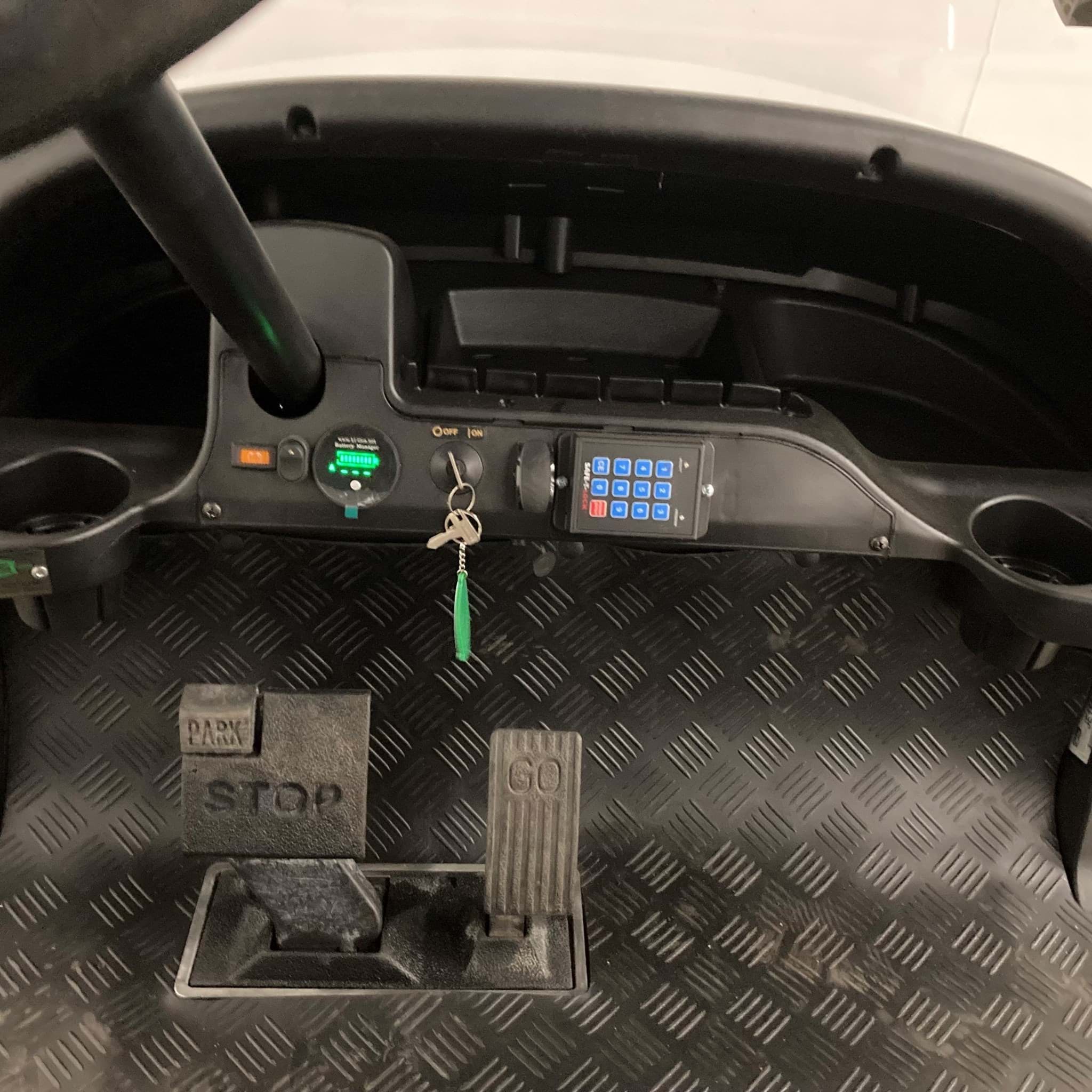 Driver Controls: Intuitive dashboard layout with battery meter and speed control
